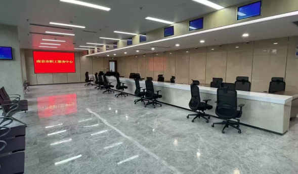 南京市職工服務中心位于白下路257號職工之家三樓,是南京市總工會為廣大職工開展多方位服務的機構,是向困難職工實施幫扶救助的窗口,是對廣大創業就業者提供多維度扶持的平臺。中心設有職業介紹、家政服務、創業貸款、普惠服務、職業培訓、婚戀交友、困難幫扶、新業態服務、法人登記法律服務、領導接訪等十個窗口,配備了智能化技能提升培訓教室;下設創業貸款擔保中心、職業介紹所、職業培訓中心等多家社會組織,為職工會員、各類企業、基層工會開展全方位服務。
