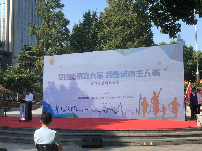 今天是10月1日,在這樣一個舉國同慶的日子里,市文明辦,市總工會,團市委,市婦聯共同舉辦“文明南京靠大家 我是城市主人翁”宣傳活動啟動儀式,在全市大力倡導“我是城市主人翁”的理念,動員廣大市民積極參與文明城市創建,共建共治共享美好幸福家園。