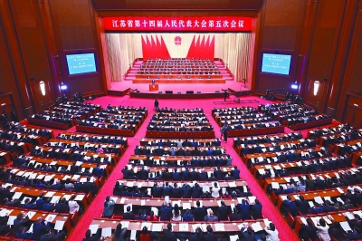 上午9時45分,信長星宣布:江蘇省第十四屆人民代表大會第五次會議開幕。全體起立,奏唱中華人民共和國國歌。