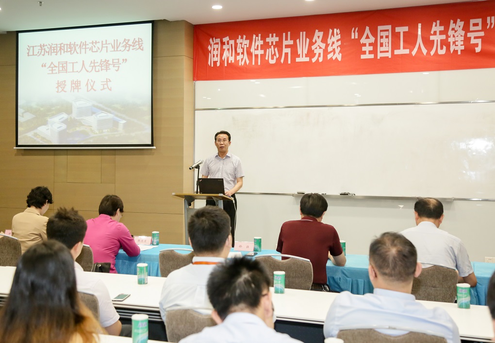 調研期間,還舉行了潤和軟件芯片業務線“全國工人先鋒號”授牌儀式,部分中國工會十七大南京市代表應邀參加了交流座談。孫強書記肯定了潤和軟件在推進全球信息化建設中所做的貢獻。他說:“全國工人先鋒號”是中華全國總工會授予基層班組的一項全國性綜合榮譽。智能終端事業本部芯片業務線能在全市成千上萬個班組中脫穎而出,獲得“全國工人先鋒號”,成績有目共睹,榮耀實至名歸。多年來,智能終端事業本部芯片業務線,為各類芯片廠商提供全套軟硬件解決方案,業務涵蓋手機、TV、監控、服務器、通訊、物聯網等各類芯片領域,為國產芯片的發展做出了重要貢獻,是全市軟件企業的優秀典型。希望芯片業務線以及企業的全體員工充分發揮示范、引領作用,大力弘揚勞模精神、勞動精神、工匠精神,以這次授牌為契機、把榮譽作鞭策,抓住芯片發展的機遇,以“國內一流”為目標,在國際舞臺上展示潤和芯片的實力!為建設“創新名城、美麗古都”、提升省會城市功能和中心城市首位度創造新的輝煌,以實際行動和優異成績,慶祝新中國成立70 周年!