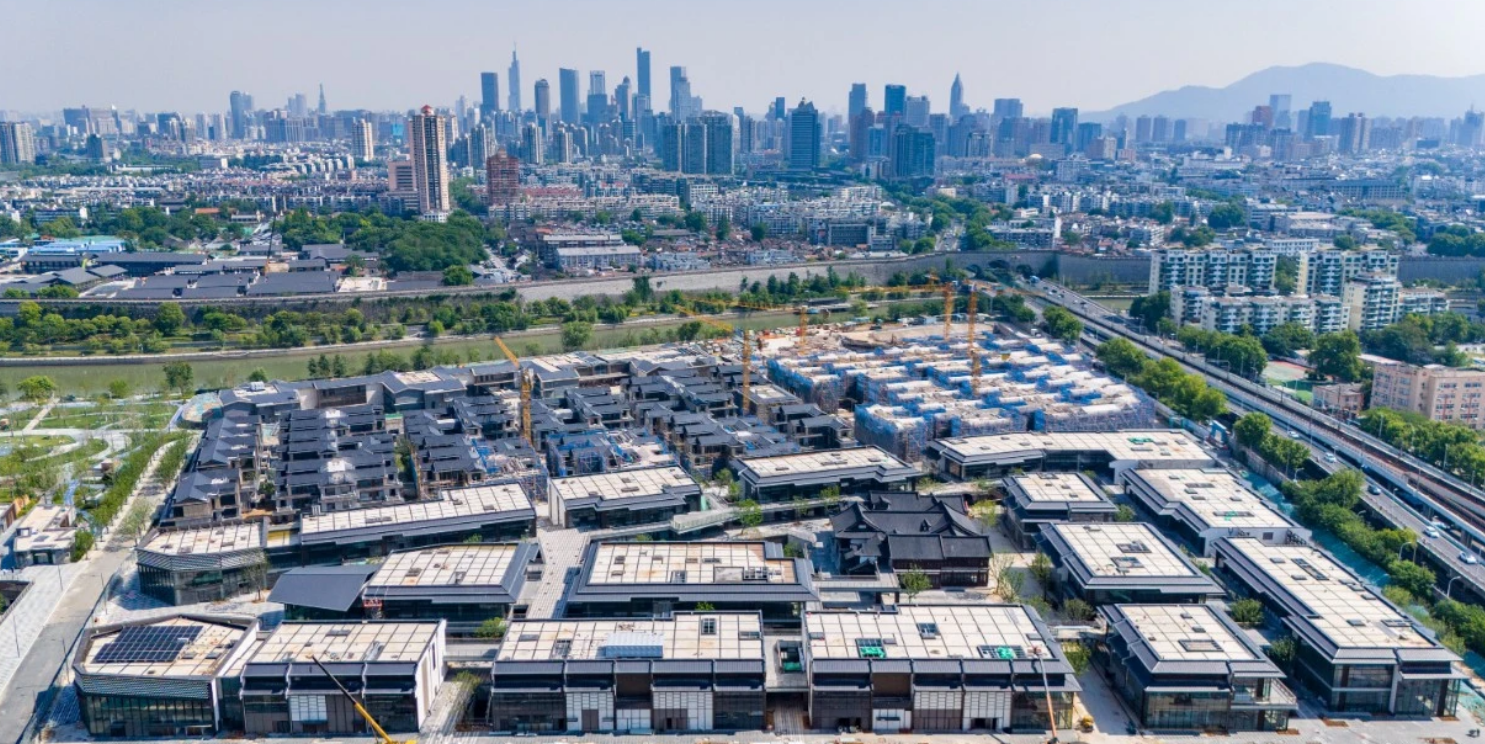 老城南片區更是處處浸潤著“文化味”。在中華門西側的光環花園城項目現場,一座掛有“來賓樓”匾額的古風建筑尤為醒目,屋頂飛檐讓人眼前一亮。項目方香港置地相關負責人介紹,明代朱元璋定都南京后,曾在秦淮河畔修建“花月春風十六樓”,其中來賓樓是接待各國使節的重要場所。該項目就以16座獨立商業體呼應這一歷史布局,通過連廊相互銜接,并將南京歷史脈絡貫穿于整體設計之中。