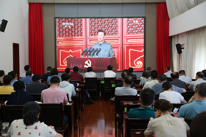 7月1日上午8時,南京市總工會組織全體黨員、干部集中收看慶祝中國共產黨成立100周年大會現場直播。
